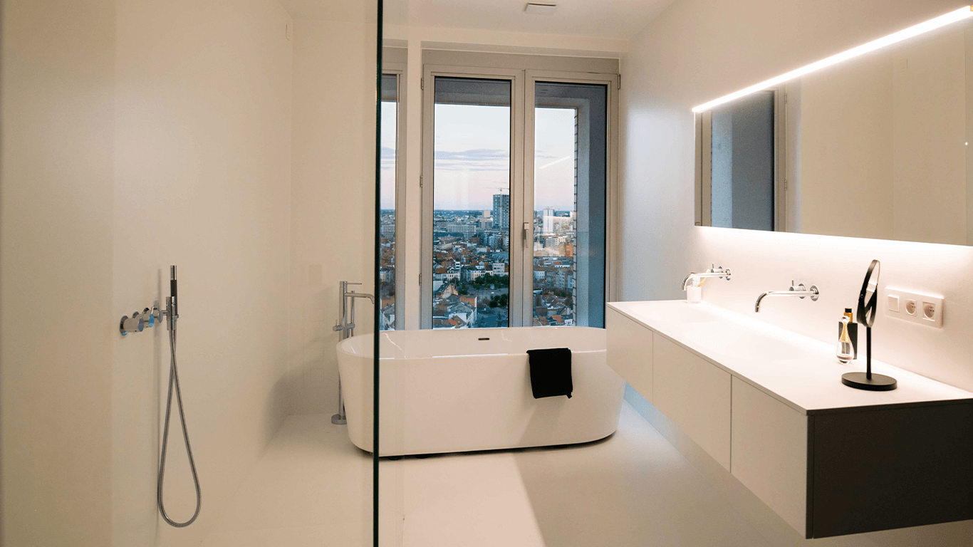 Tussen het bruisende Eilandje en het rustige Park Spoor Noord bevindt zich residentie Lichttoren. Hier op de 20ste verdieping van het gebouw waant u zich “the king of the building”. Van zodra u de penthouse betreedt valt onmiddellijk het unieke uitzicht over de stad Antwerpen op. Dit dankzij de imposante ramen die zich uitstrekken van vloer tot plafond en dit over de volledige 2 verdiepingen (!).